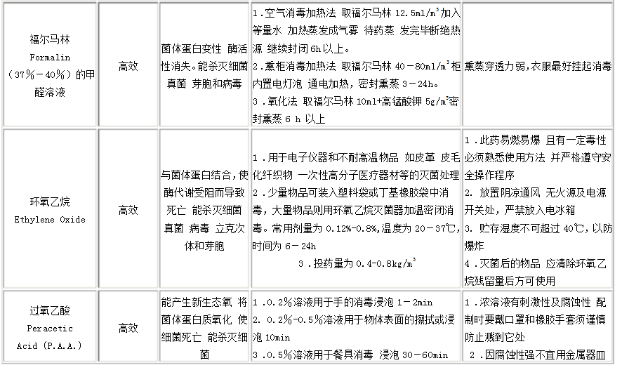 此外,尚可應(yīng)用甲醛或過氧乙酸等進(jìn)行熏蒸滅菌(詳見表5-2)。